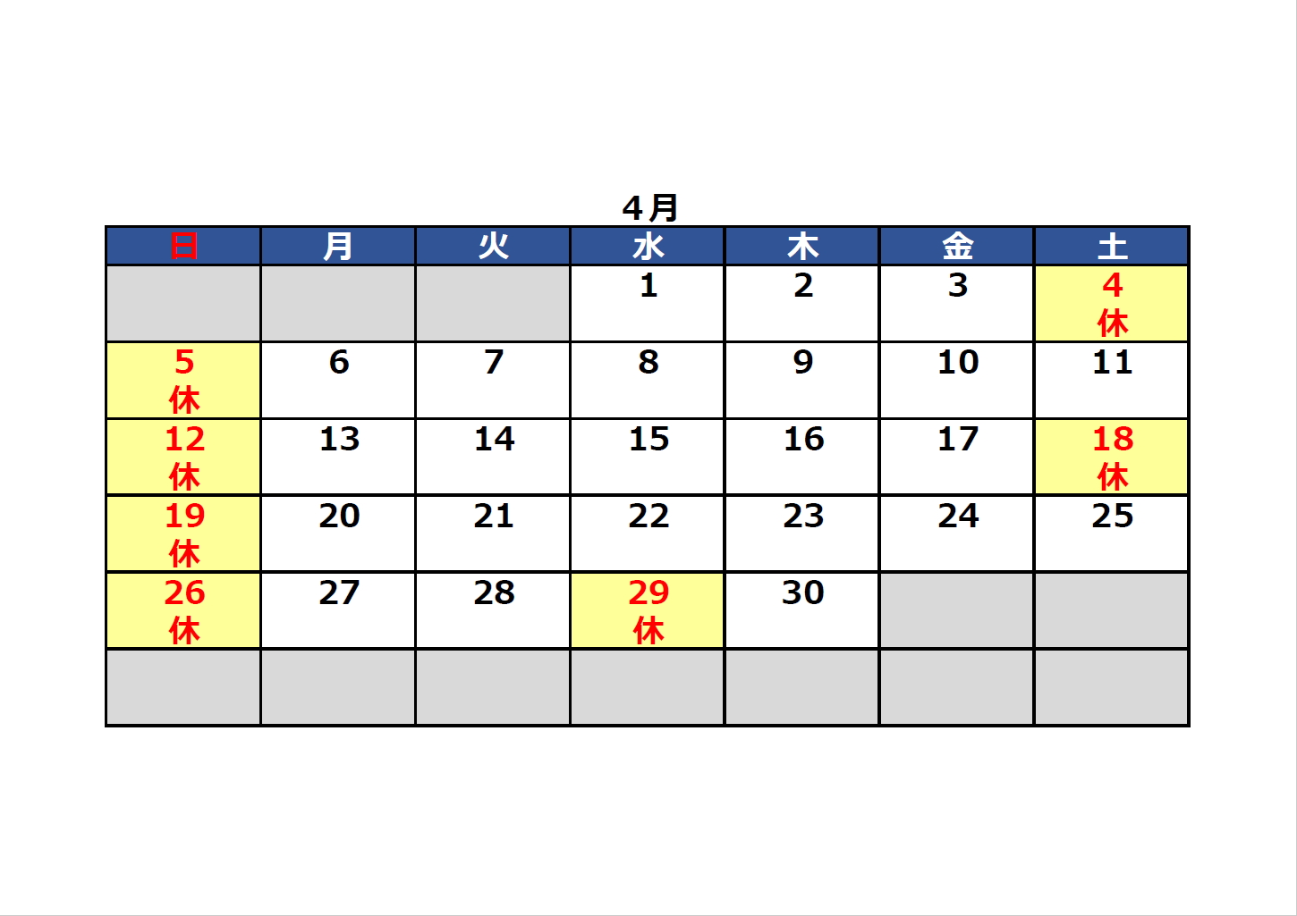 家電リサイクル 指定引取場所、2026年4月の営業日は下記の通りとなります。