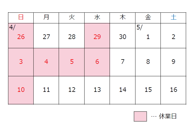 ゴールデンウィーク休業日のお知らせ
